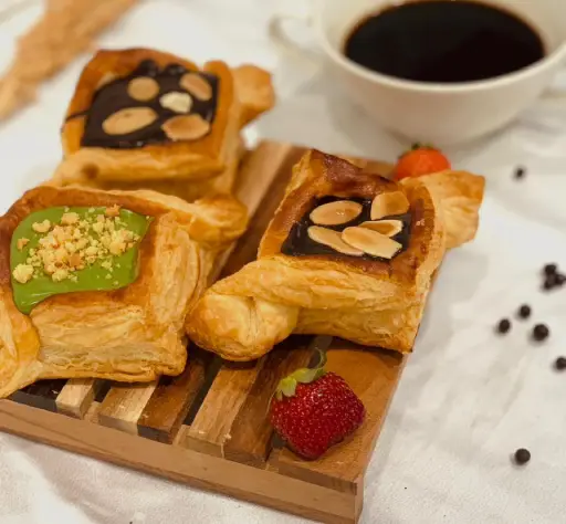 Croissant, puff pastry, dan aneka snack gurih yang renyah dan lezat, cocok menemani waktu santai Anda.
